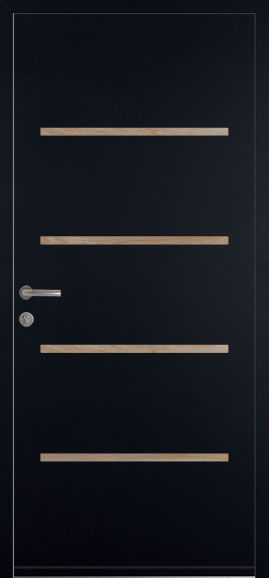 Les portes de la collection Fusion sont habillées d’inserts que vous pouvez choisir en aspect inox brossé ou en laqué noir 9005 structuré. C’est donc vous qui décidez de la touche finale de votre porte d’entrée.